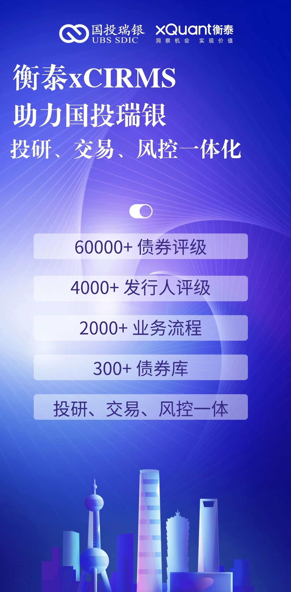 國投瑞銀基金近期上線xCIRMS衡泰信用投資研究管理系統,深度挖掘投資研究價值,賦能投資交易、風險管理,形成投研+交易+風控一體化管理體系,業務效率顯著提升。